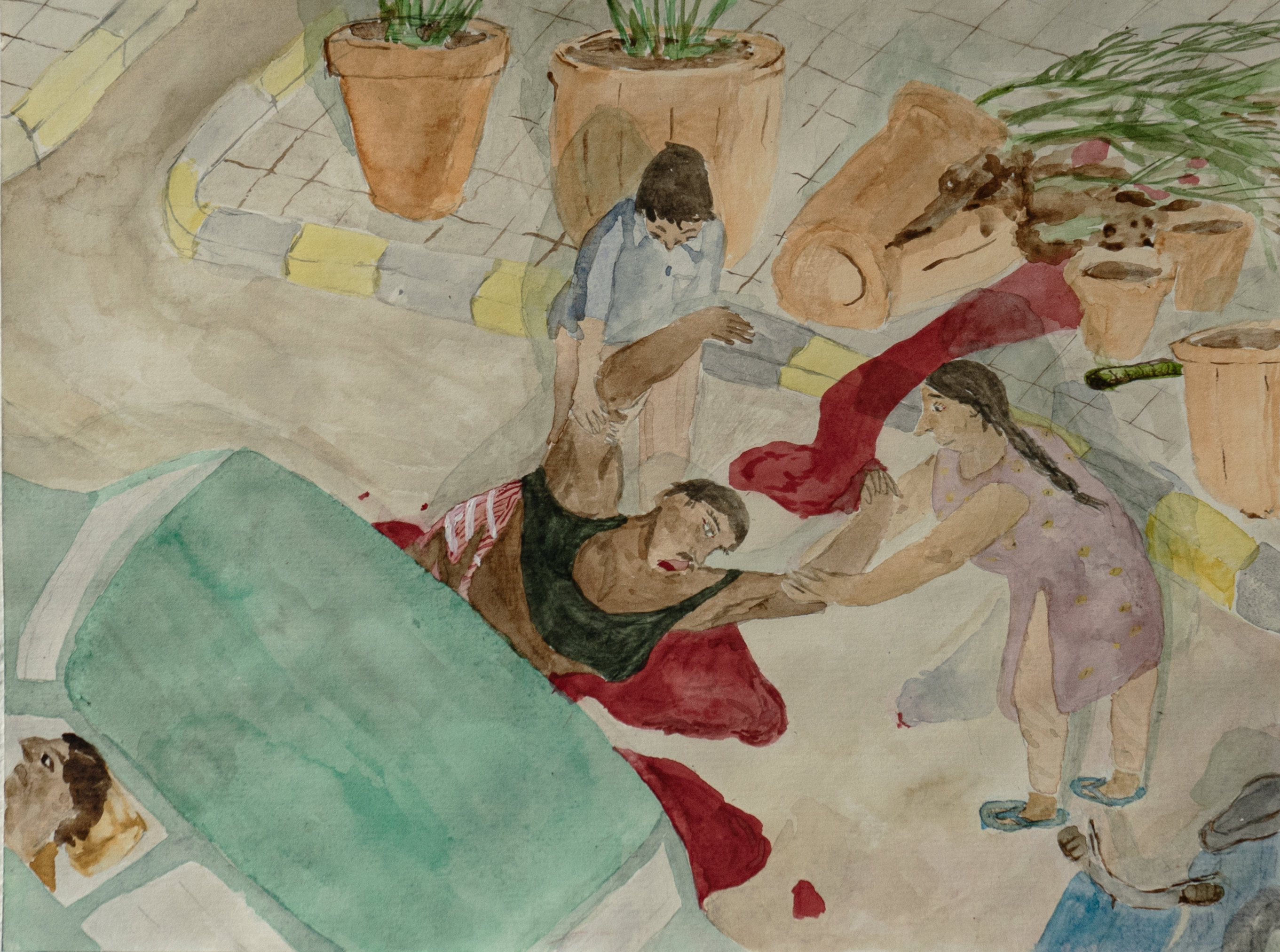 This is a drawing of a bad traffic accident in Doddabommasandra, Bengaluru. I didn’t witness it - it was drawn from an account of the incident told to me over the phone by my mother, when I was living in Berlin.